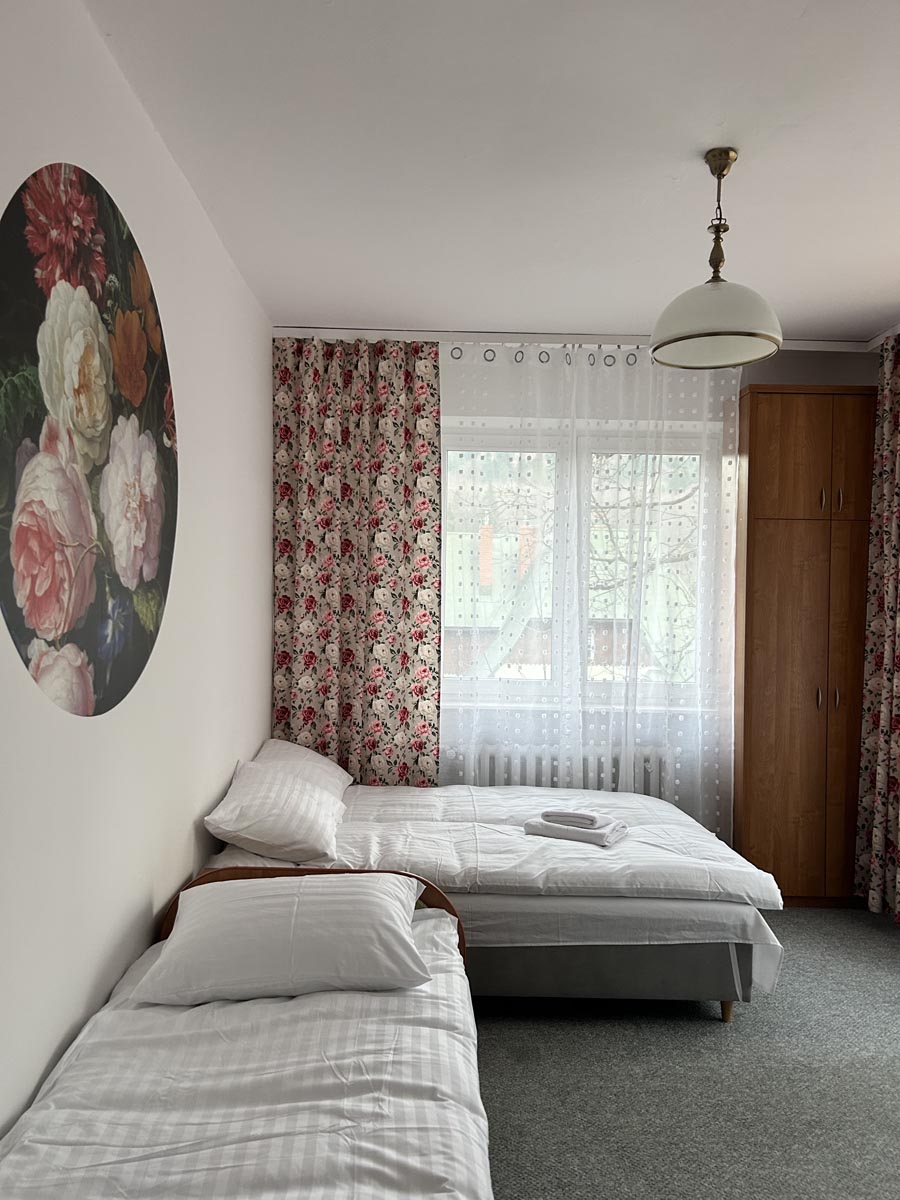 Do dyspozycji naszych Gości pozostawiamy pokoje 1,2 i 3 - osobowe. Wszystkie pokoje wyposażone są w telewizję kablową, czajnik, bezprzewodowy internet, ręcznik, kubki, talerzyki, sztućce.